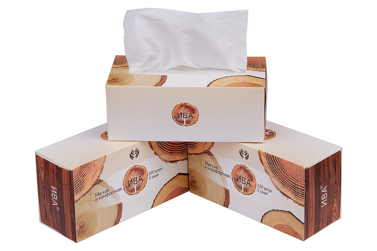 Салфетки бумажные Ива 220 2х слойные в картонной коробке